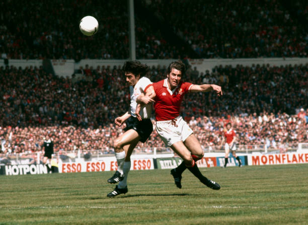 Kevin Keegan contre Martin Buchan, finale de FA Cup 1977 (Crédits : Bob Thomas Sports Photography via Getty Images)