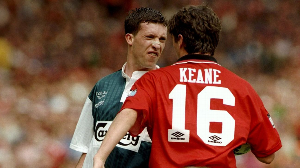 Roy Keane contre Robbie Fowler (1996) (Crédits : Shaun Botterill/ALLSPORT)